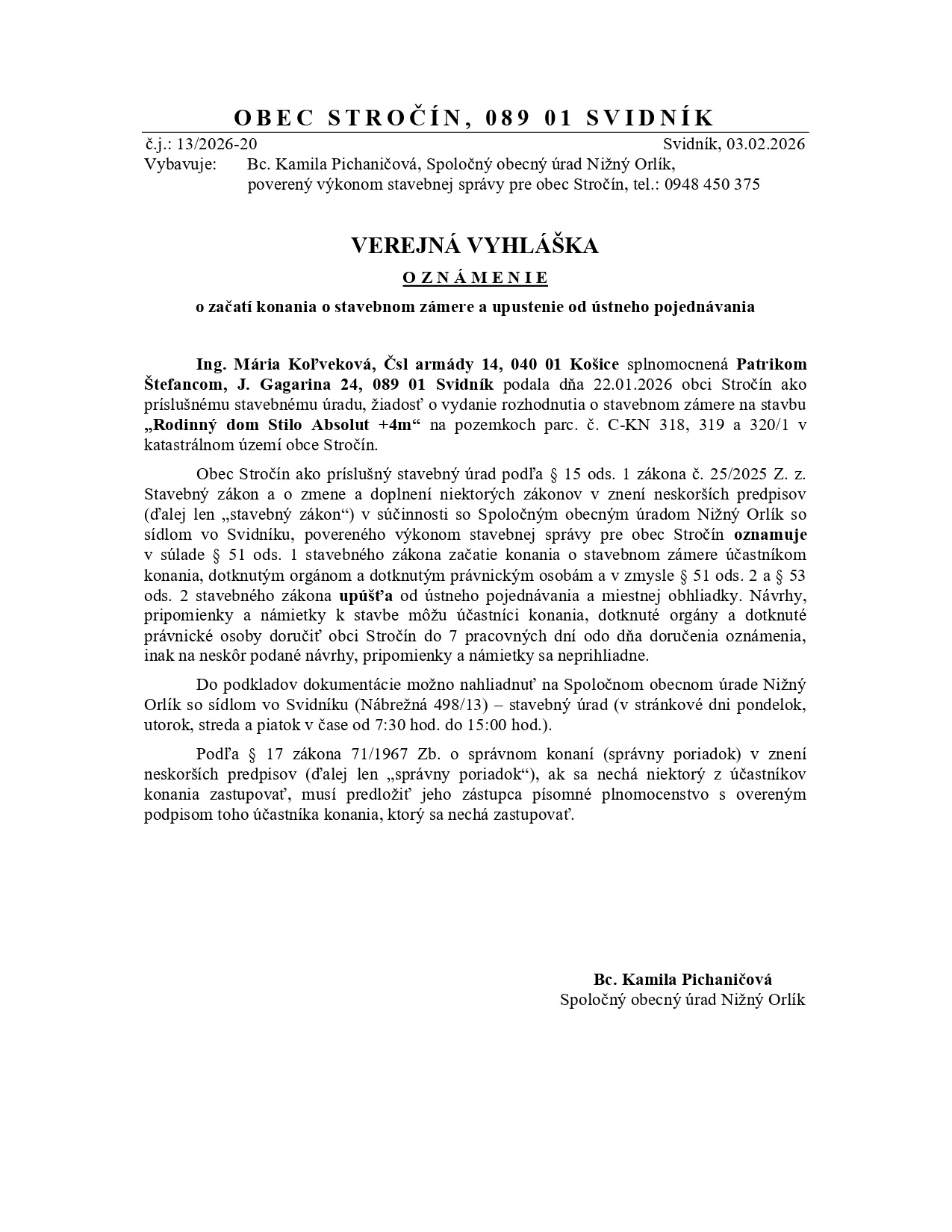 ÚPN obce Stročín- Oznámenie o strategickom dokumente o posudzovaní vplyvov na ŽP