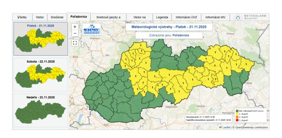 VÝSTRAHA 1. stupňa od SHMÚ pred výskytom poľadovice